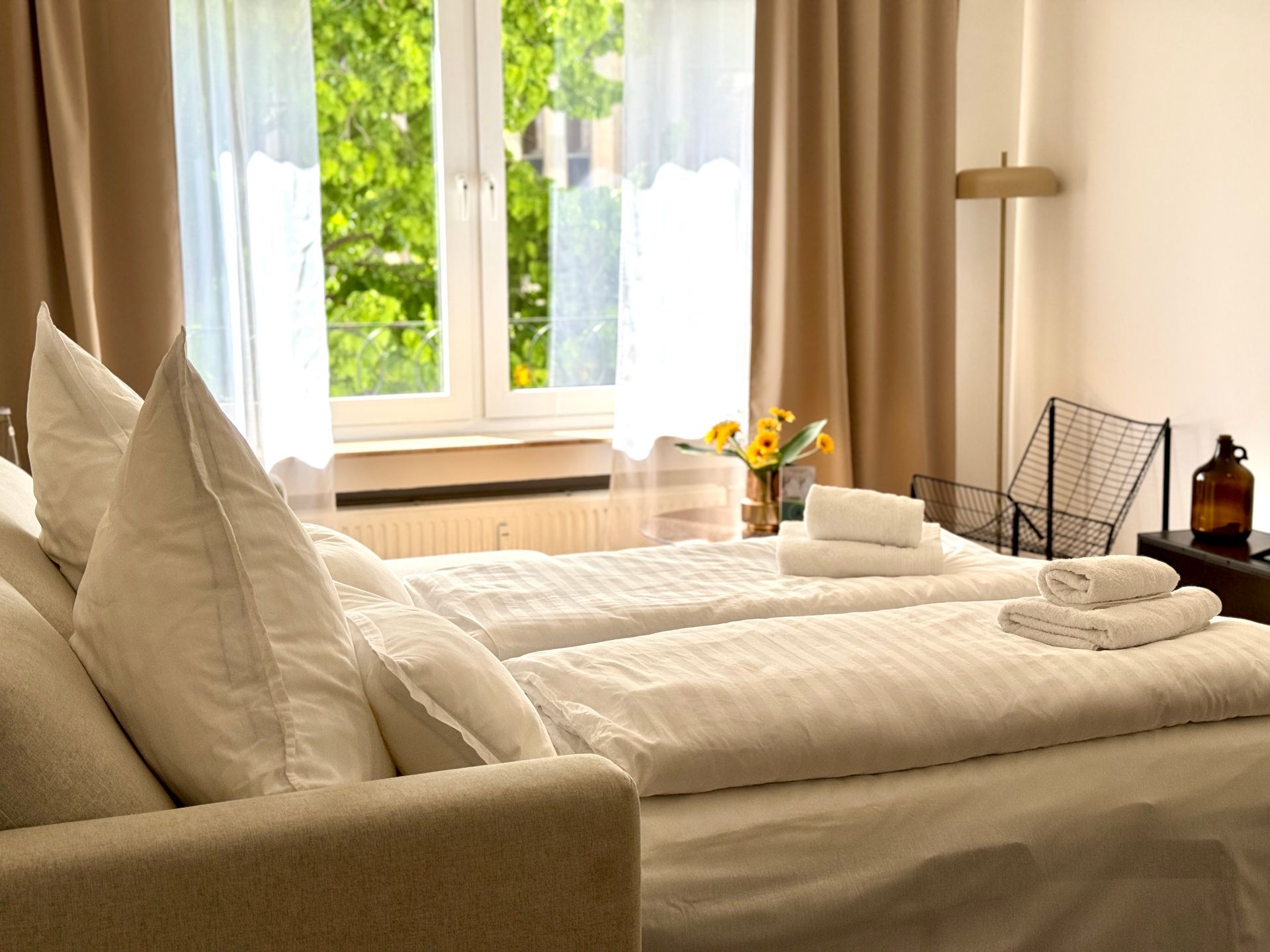 Ob für den Citytrip, Geschäftsreise oder einen Besuch bei Freunden – bei uns wohnst du mitten in der Stadt: Der Bahnhof ist fußläufig erreichbar, ebenso wie Supermärkte, Apotheken, charmante Cafés und die beliebte Einkaufsstraße.